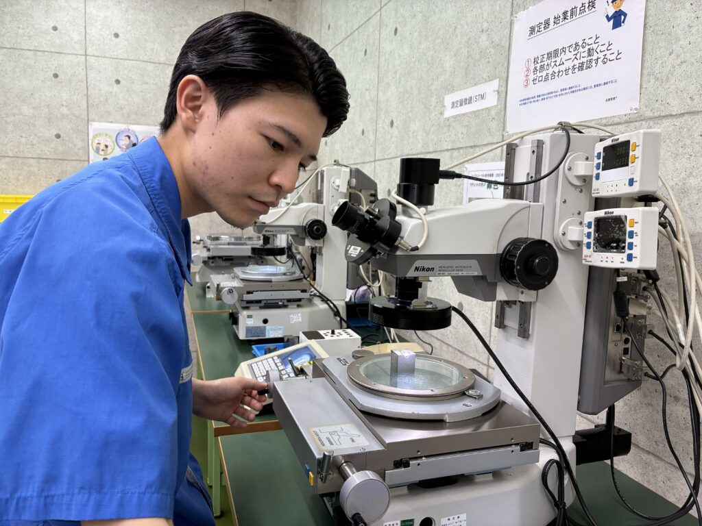 中途採用2年目。NC旋盤の機械オペレーターとして活躍中。主な業務は、製品を加工するためのプログラム作成、図面通りに切削加工、製品の寸法を確認する為の工程内検査など。