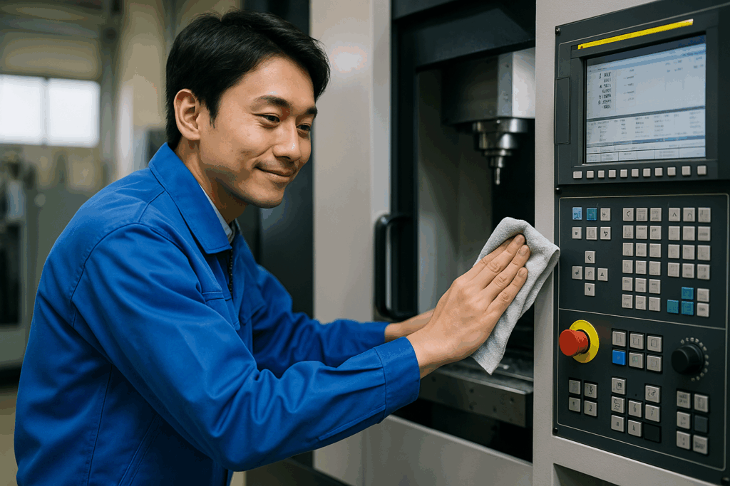 一日作業した持ち場を掃除したら退勤記録を入力して退社します!