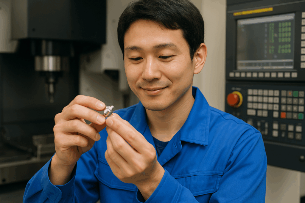 午後は、午前中に加工した医療機器の部品の寸法検査を行いました。図面通りにできていることはもちろん、難易度の高い要求仕様を満たすために集中して行います。